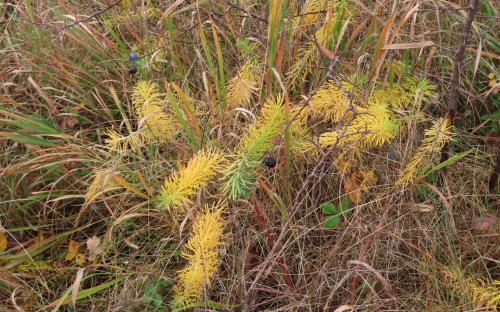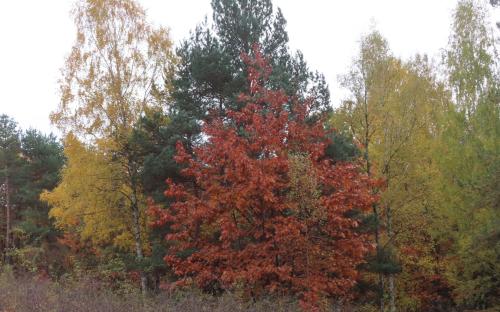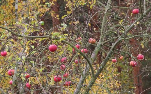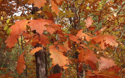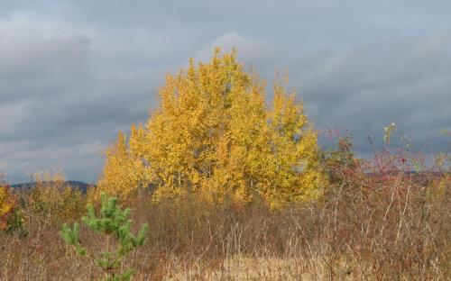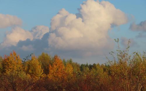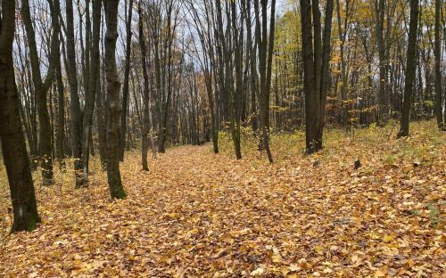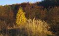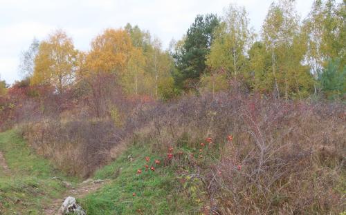 Z Karczówki możemy zejść na zachód po dywanach z żółtych i brązowych liści, które spadły z grabów, klonów i buków. A za nią Dalnia z czerwienią jesiennych dębów. Dalej Grabina z kolorowym widokiem poprzez kamieniołom, dolinę Sufragańca i Bobrzy, aż za Piekoszów i Pasmo Zgórskie, aż po horyzont. Pomiędzy wzgórzami brzozy świecą złotem liści i bielą pni. Jeszcze kwitną polne goździki, czerwienią się dzikie jabłka, głogi i róże, tarnina połyskuje niemal czarnym granatem, a nawłoć przybrała kolor biały.