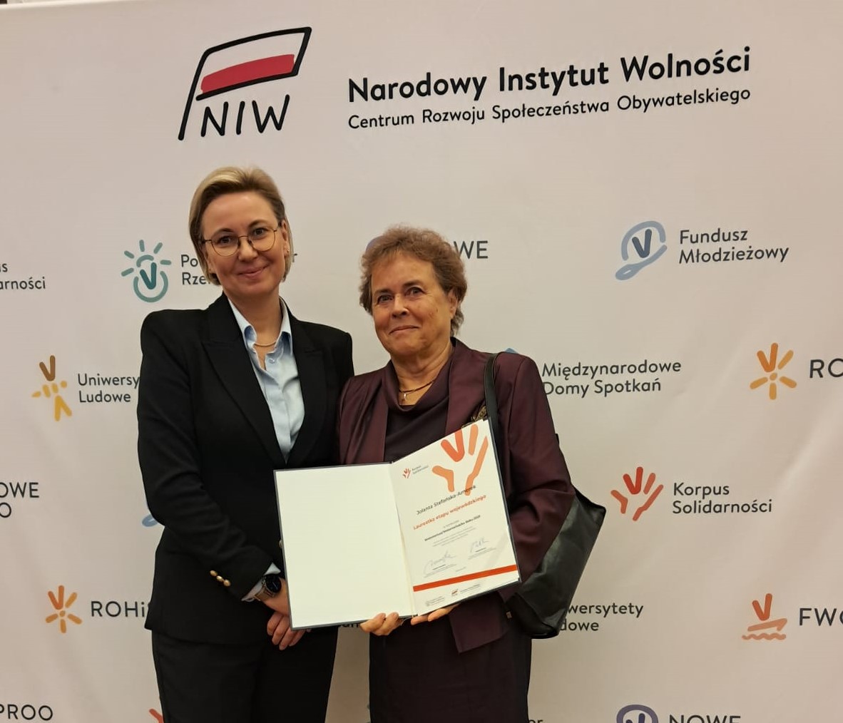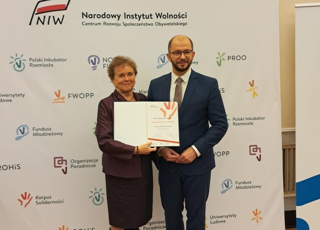Z satysfakcją informujemy, że żeromszczanka, Jolanta Stefańska-Amerek została laureatką Konkursu na Wolontariusza i Wolontrariuszkę Roku 2025 w województwie świętokrzyskim. Konkurs organizuje Narodowy Instytut Wolności – Centrum Rozwoju Społeczeństwa Obywatelskiego.  Uroczystość ogłoszenia wyników miała miejsce  parę dni temu, 11 grudnia 2025 roku, w  Kancelarii Prezesa Rady Ministrów. Wyróżnienia wolontariusze odebrali z rąk Michała Brauna, Dyrektora Narodowego Instytutu Wolności i Adriany Porowskiej, Sekretarza Stanu w KPRM. Serdecznie GRATULUJEMY!