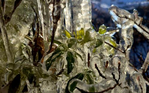 Rośliny ukryte pod lodowym płaszczem.