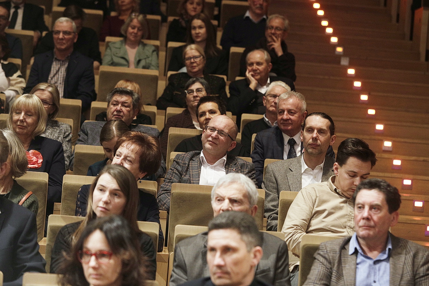 Z wielką niecierpliwością czekaliśmy na piątkowy koncert w Filharmonii Świętokrzyskiej, ponieważ ziściło się nasze marzenie, aby twórczość patrona szkoły była inspiracją do skomponowania muzyki. Pomysłodawcą tego przedsięwzięcia był Żeromszczak Jerzy Daniel. Wśród wielu pomysłów uczczenia 300-lecia szkoły, ten był wyjątkowy i wymagający zaangażowania profesjonalistów.  W 2025 roku został ogłoszony Międzynarodowy Konkurs Kompozytorski „Żeromski 2025”, a w piątek 20 lutego 2026 roku zabrzmiały nagrodzone kompozycje  inspirowane „Puszczą jodłową”. Orkiestra pod batutą Jacka Rogali wykonała trzy utwory. Głównym zwycięzcą konkursu został Massimo Lauricella, autor utworu „Wciąż widzę cię oczami wyobraźni”. Otrzymał on I nagrodę w wysokości 25 tys. zł ufundowaną przez Ministerstwo Kultury i Dziedzictwa Narodowego. Nagrodę wręczył nasz absolwent Sławomir Rogowski, podsekretarz stanu w Ministerstwie Kultury i Dziedzictwa Narodowego. Drugą nagrodę (15 tys. zł) przyznano Krystianowi Neściorowi za kompozycję „O naturze”, a trzecią (10 tys. zł) otrzymała Olga Pasek za utwór „Szepty lasów”. Dodatkowo została ona uhonorowana nagrodą specjalną Polskiego Wydawnictwa Muzycznego dla najmłodszego laureata. Koncert był doskonałą okazją do spotkania pokoleń Żeromszczaków, którzy dodatkowo mogli obejrzeć wystawę fotograficzną „30-lat Stowarzyszenia Absolwentów I LO im. S. Żeromskiego „Żeromszczacy”. Dziękujemy wszystkim za przybycie i stworzenie ciepłej rodzinnej atmosfery.