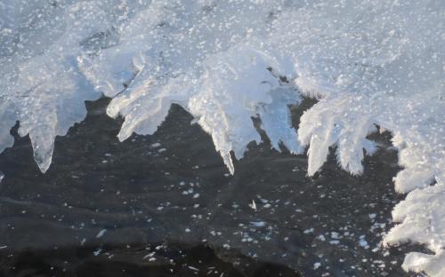 Blisko wiosny słońce, woda i mróz zabawiają się tworząc przedziwne kształty. Gdy w dzień słońce świeci i podnosi się temperatura, a nocą wraca mróz, na Bobrzy, Sufragańcu i innych naszych rzeczkach powstają niepowtarzalne utwory. Jedne są z zamarzniętego śniegu, inne z czystego lodu. Jedne leżą na powierzchni wody i za chwilę zmienią kształt, a inne wiszą wyżej, niekiedy ponad starszą warstwą lodu.