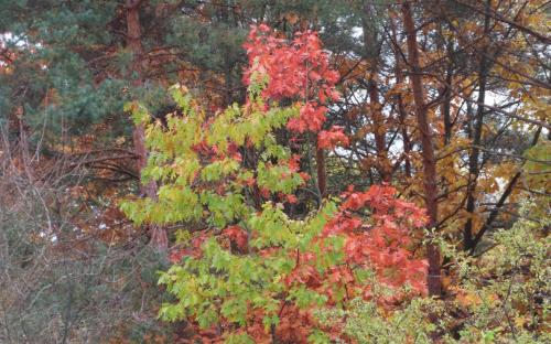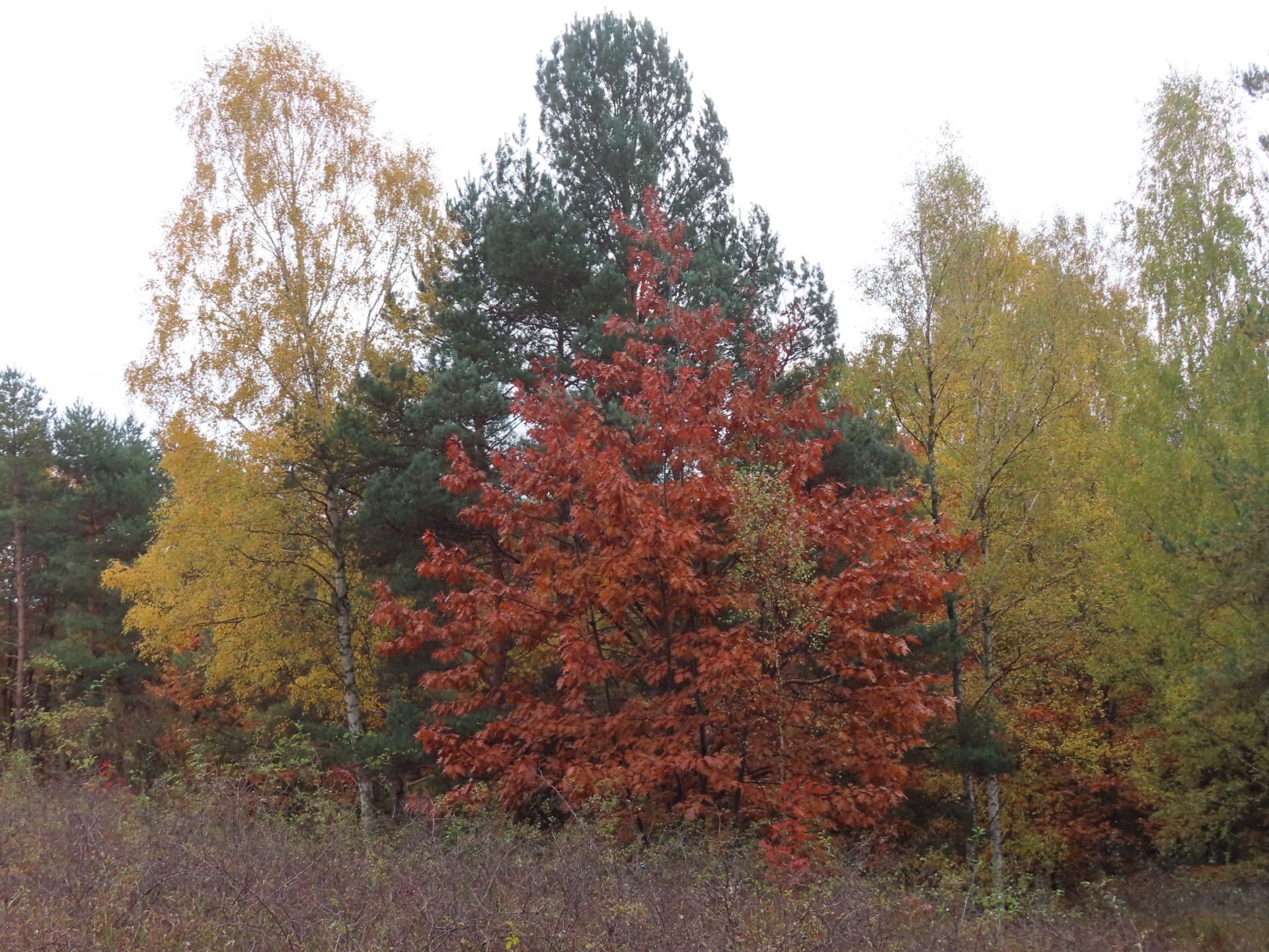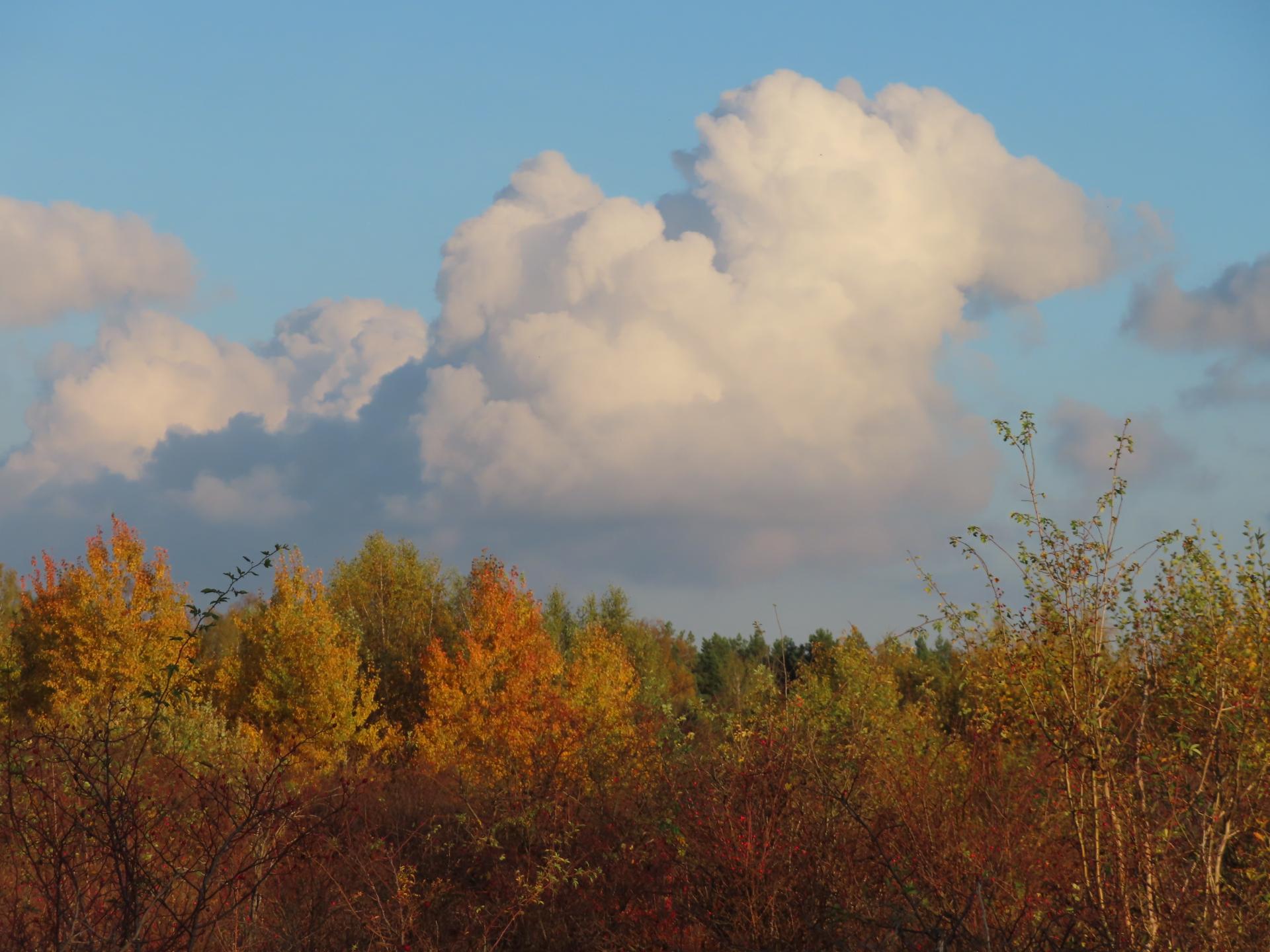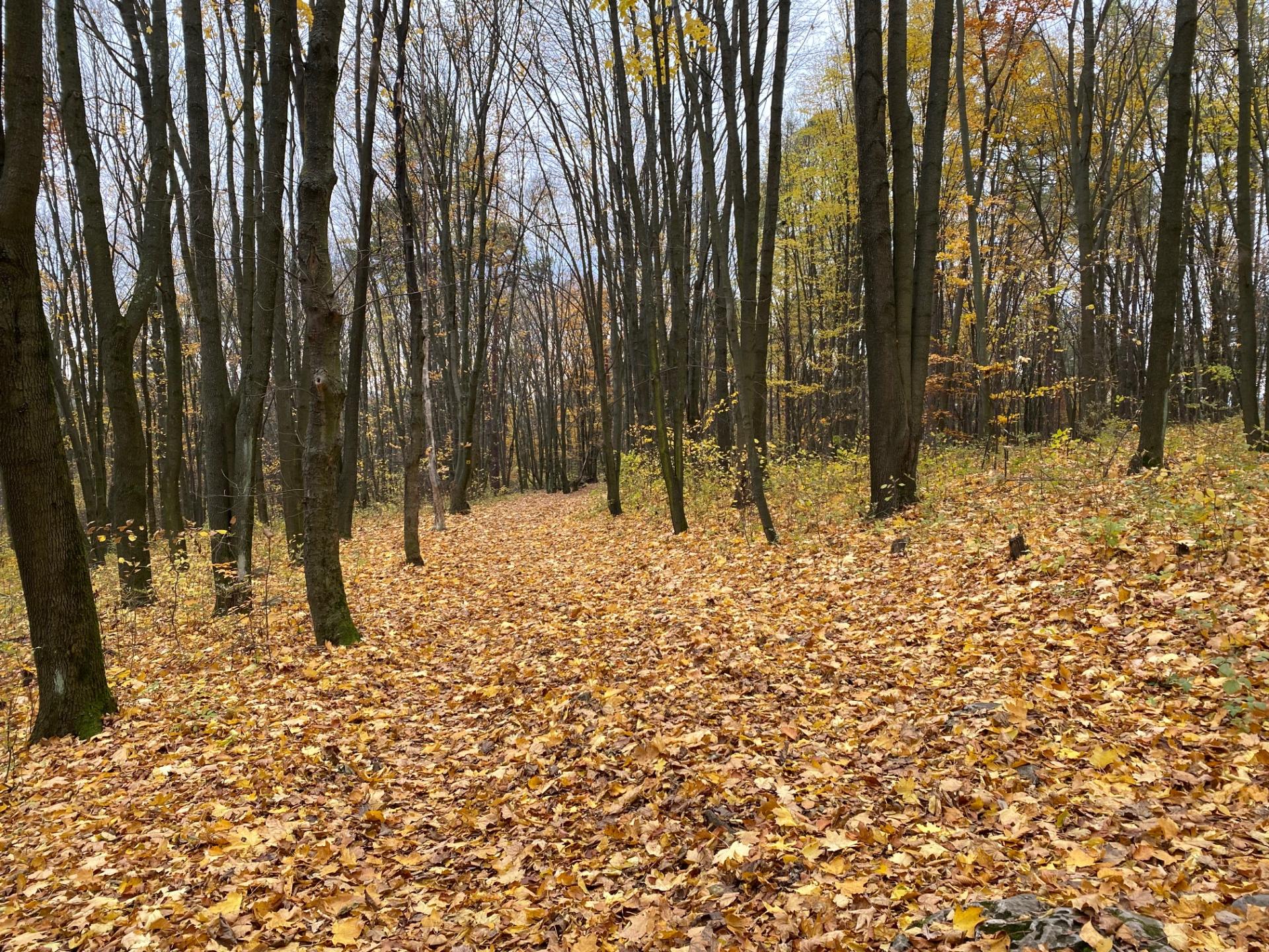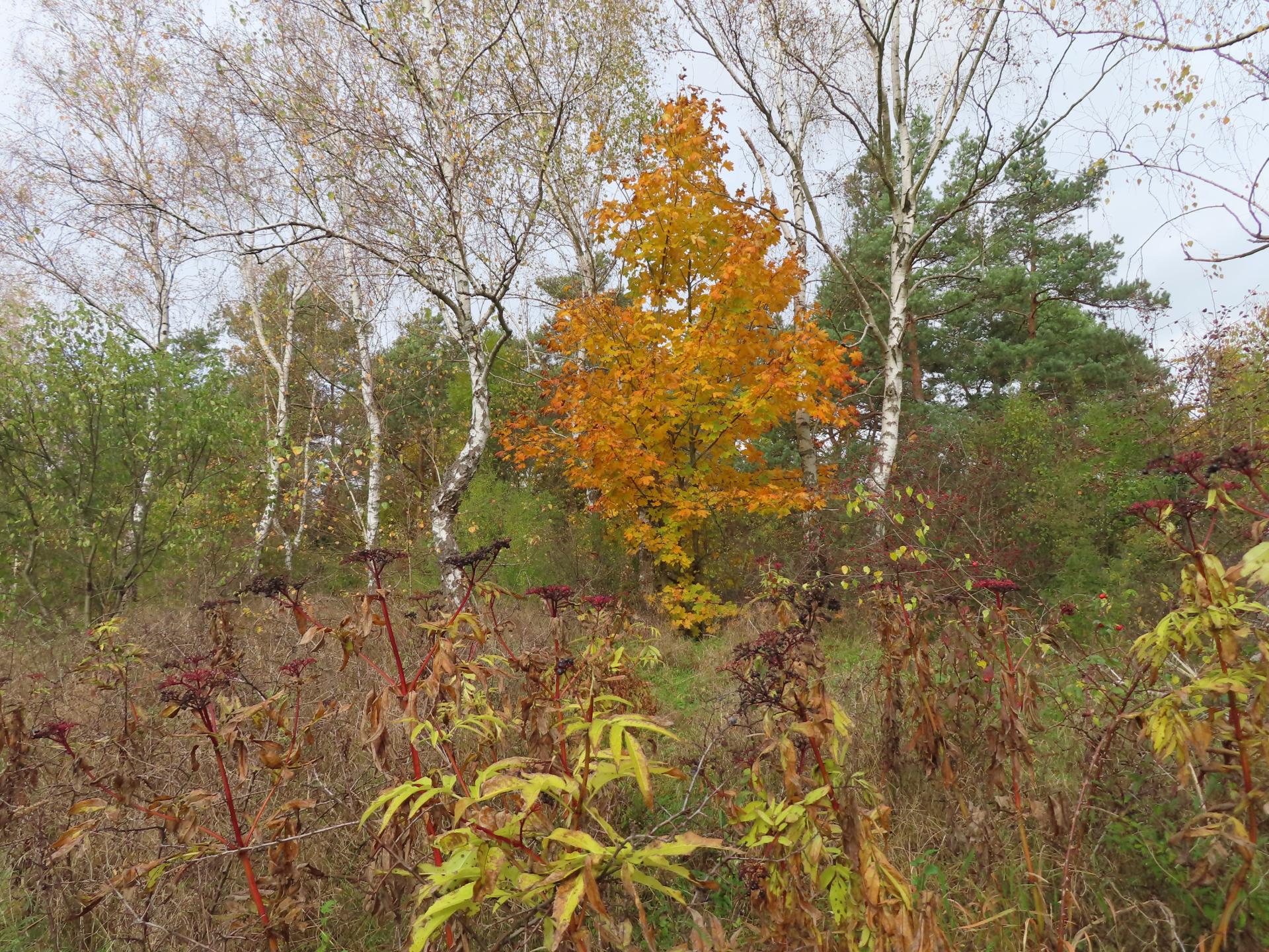 Z Karczówki możemy zejść na zachód po dywanach z żółtych i brązowych liści, które spadły z grabów, klonów i buków. A za nią Dalnia z czerwienią jesiennych dębów. Dalej Grabina z kolorowym widokiem poprzez kamieniołom, dolinę Sufragańca i Bobrzy, aż za Piekoszów i Pasmo Zgórskie, aż po horyzont. Pomiędzy wzgórzami brzozy świecą złotem liści i bielą pni. Jeszcze kwitną polne goździki, czerwienią się dzikie jabłka, głogi i róże, tarnina połyskuje niemal czarnym granatem, a nawłoć przybrała kolor biały.