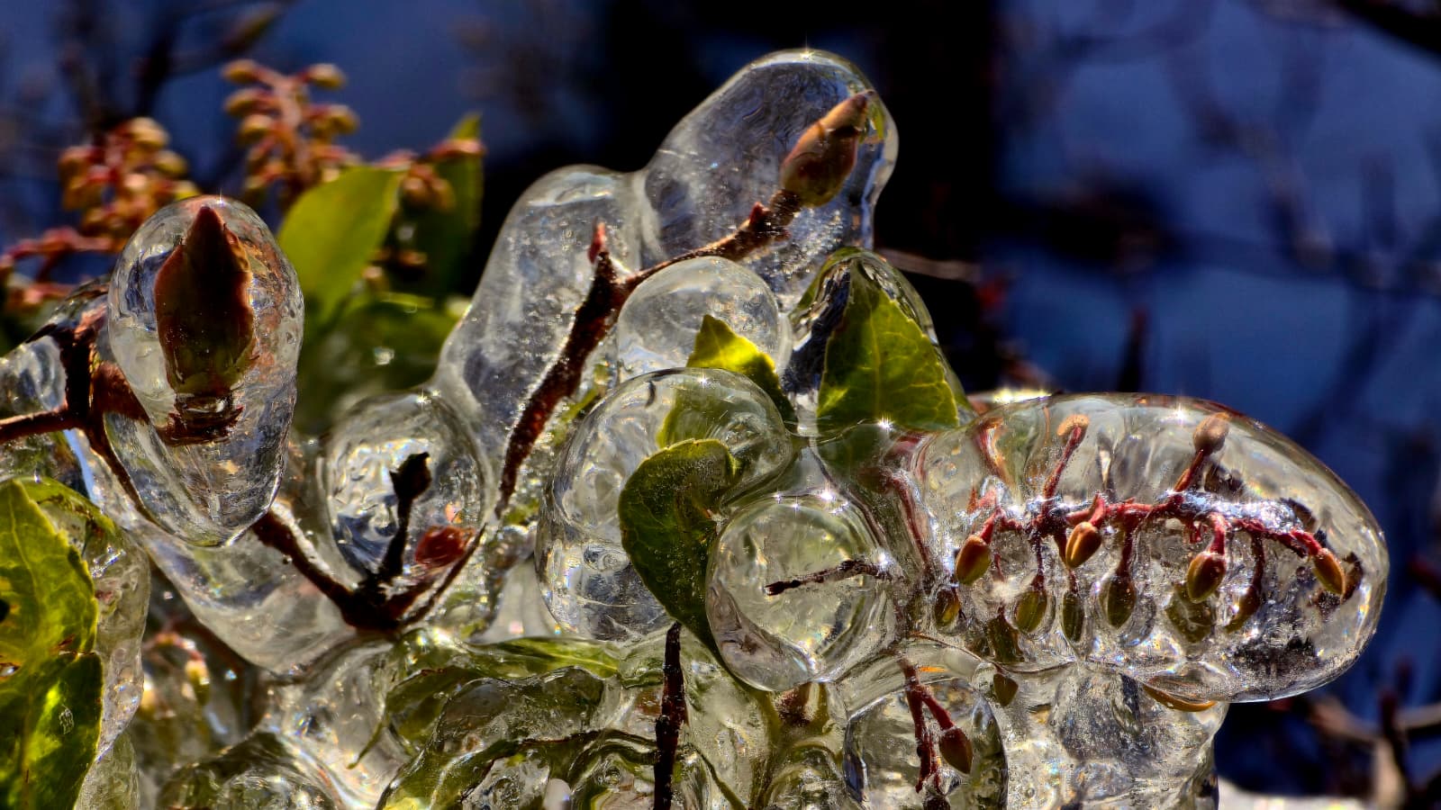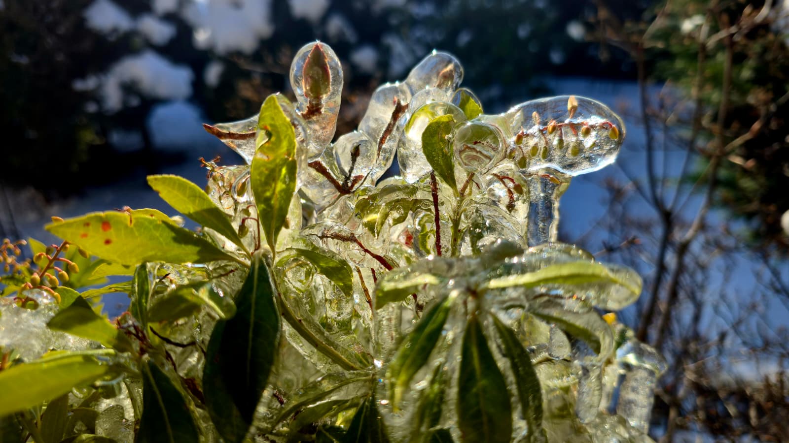 Rośliny ukryte pod lodowym płaszczem.