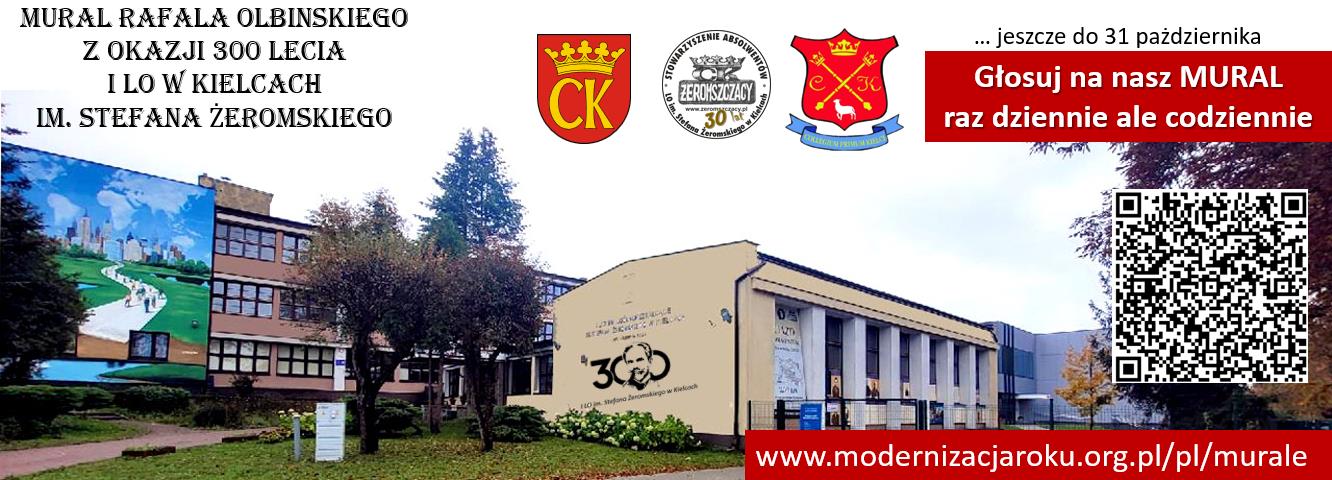 Antysmogowy Mural zdobiący ścianę I Liceum Ogólnokształcącego im. Stefana Żeromskiego w Kielcach zdobył kolejne wyróżnienie. W Ogólnopolskim Konkursie „Z modernizacją wśród murali” w internetowym głosowaniu na „Najpiękniejszy Mural w Polsce” otrzymaliśmy nagrodę publiczności. Radość jest ogromna, bo walka była zacięta i dostarczyła nam dużo emocji.
