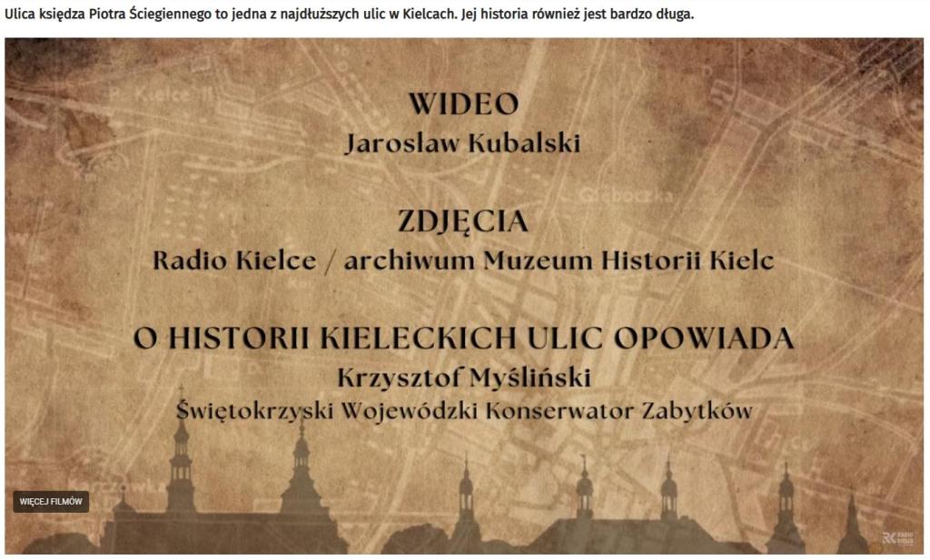 W Radiu Kielce, w cyklu „Historia kieleckich ulic”, Krzysztof Myśliński, Świętokrzyski Wojewódzki Konserwator Zabytków opowiedział o ulicy Księdza Piotra Ściegiennego: