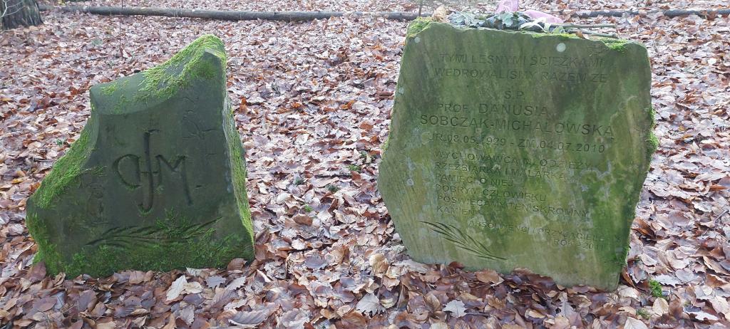 Niezwykłe kamienie, ślad pamięci o Profesor Danucie Sobczak-Michałowskiej, leżą w lesie właściwie u podnóża góry Pierścienica. Pani Profesor, malarka i rzeźbiarka, uczyła w naszym liceum wychowania plastycznego w latach 1971-1984. Pracownia na parterze, w której najczęściej prowadziła zajęcia, od Spotkania Pokoleń w 2015 roku nosi jej imię. W Kielcach miała dwie wystawy —jedną w BWA w maju 1981 i drugą, pośmiertną, w Muzeum Historii Kielc w 2015.