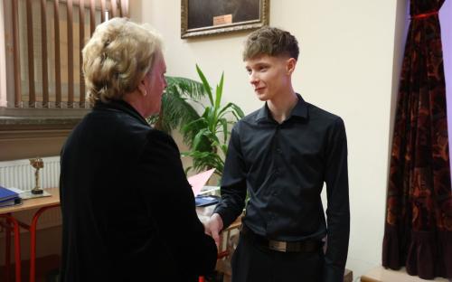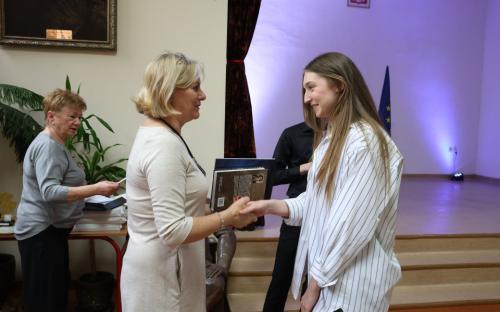 I wreszcie statuetki za wspaniałą teatralną przygodę, niezapomniane spektakle, ciekawe aktorskie kreacje otrzymali z rąk Anny Wojnowskiej- Duplickiej oraz Lilli Winiarskiej Ostachowskiej (absolwenki 1986r.) - Alicja Janicka, Zofia Wilczyńska, Igor "Kumashi" Sołkowicz, Filip Obarzanowski, Krystian Pyk, Adam Pawełkiewicz, Julia Mońska. Fundatorką książek „Stefan Żeromski jaki był” Kwiryny Handke była Kazimiera Zapałowa. Nad uroczystością wręczania nagród opiekę sprawowała skarbniczka Stowarzyszenia – Hanna Ziętek (absolwentka 1971r.). Natomiast Prezes Zofia Pietraszek (absolwentka 1980r.) w imieniu nas wszystkich, absolwentów tej zacnej szkoły, serdecznie gratulowała abiturientom dotychczasowych osiągnięć, dziękowała za piękną współpracę i życzyła powodzenia na egzaminie maturalnym, licząc, że niebawem zasilą szeregi naszego Stowarzyszenia.