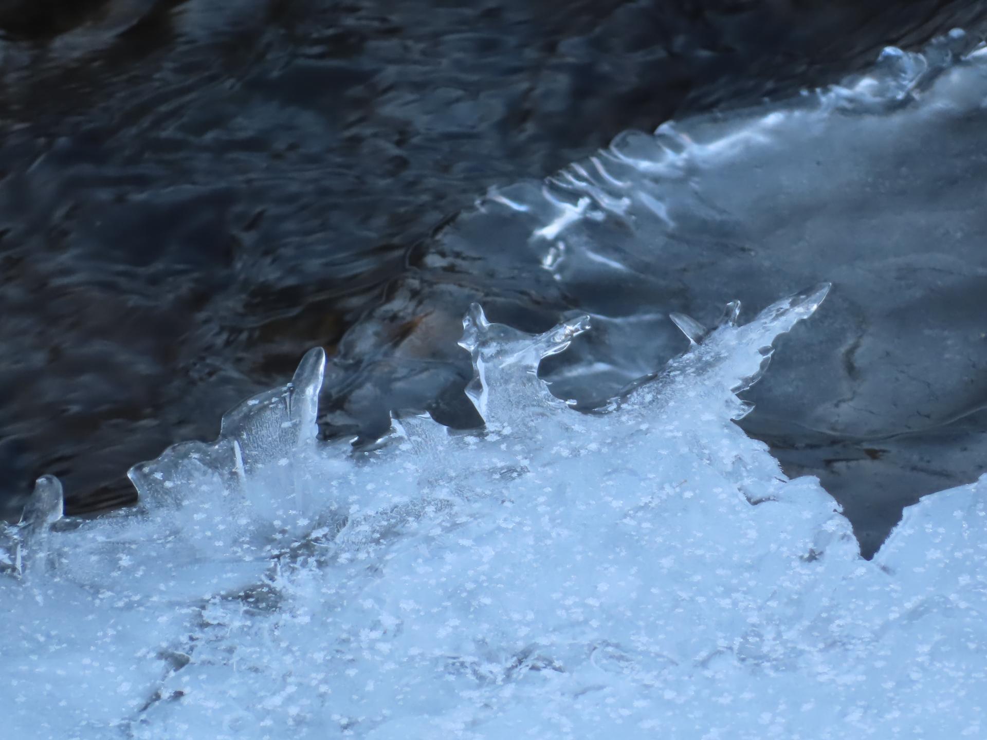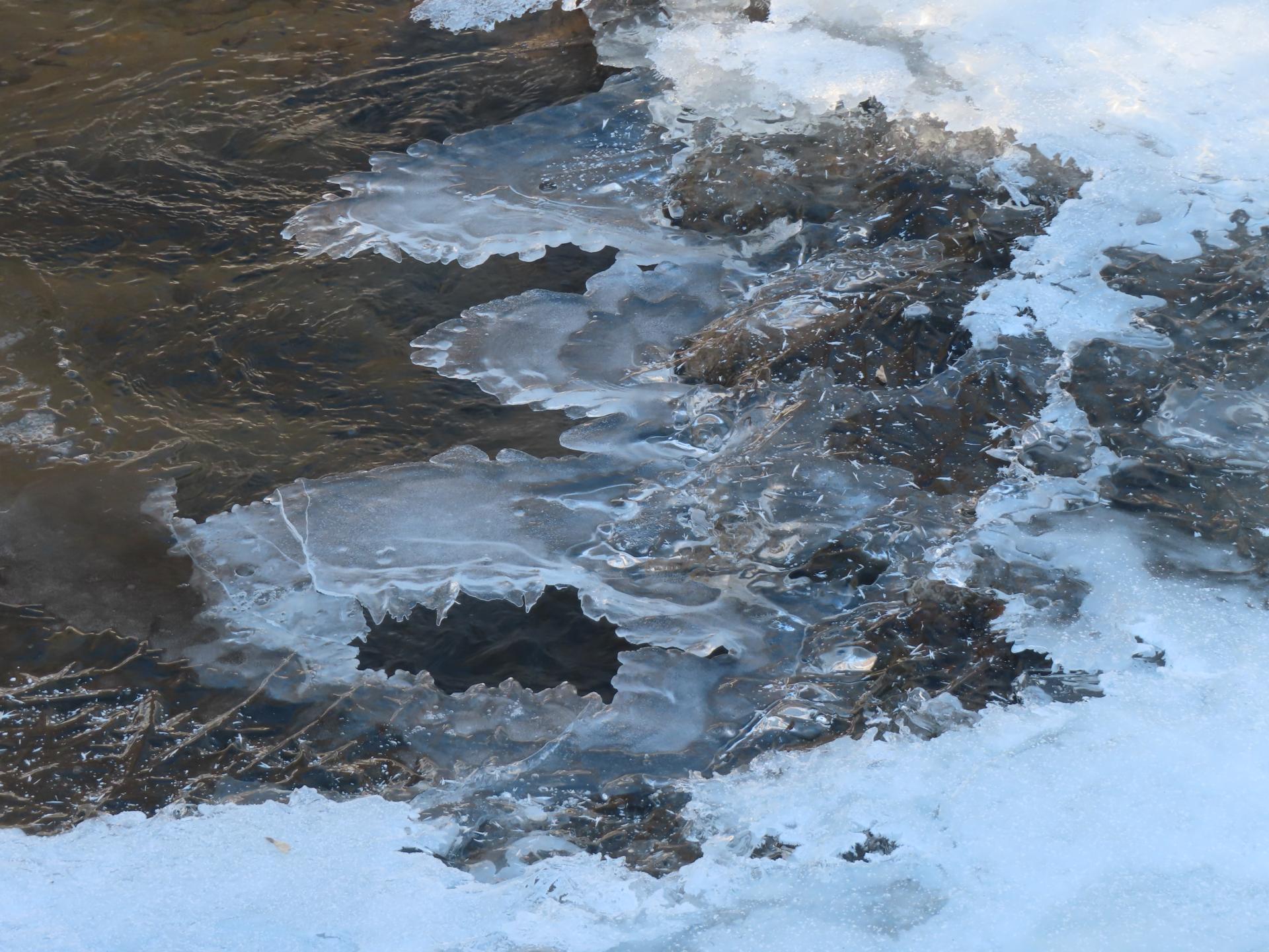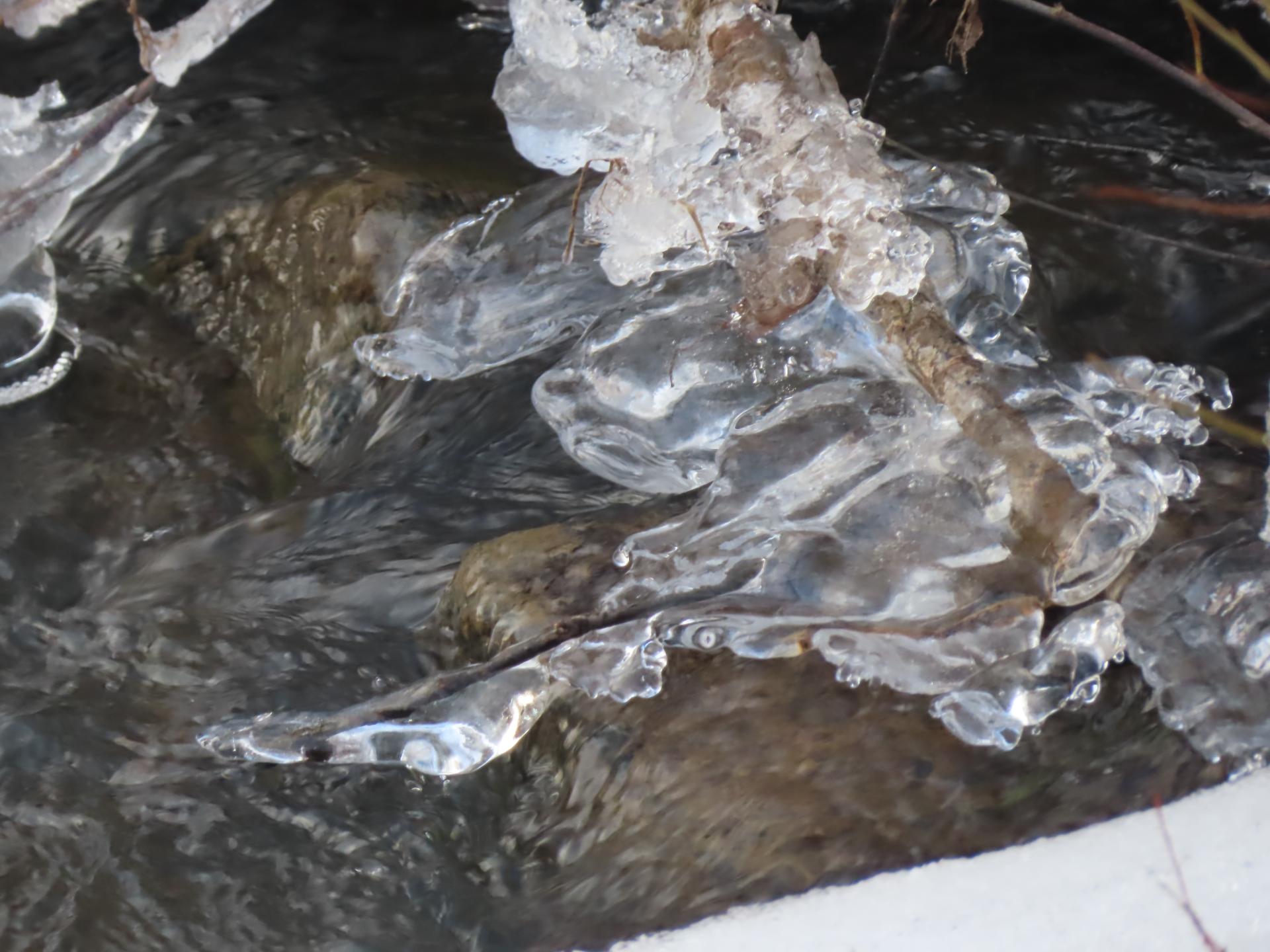 Blisko wiosny słońce, woda i mróz zabawiają się tworząc przedziwne kształty. Gdy w dzień słońce świeci i podnosi się temperatura, a nocą wraca mróz, na Bobrzy, Sufragańcu i innych naszych rzeczkach powstają niepowtarzalne utwory. Jedne są z zamarzniętego śniegu, inne z czystego lodu. Jedne leżą na powierzchni wody i za chwilę zmienią kształt, a inne wiszą wyżej, niekiedy ponad starszą warstwą lodu.