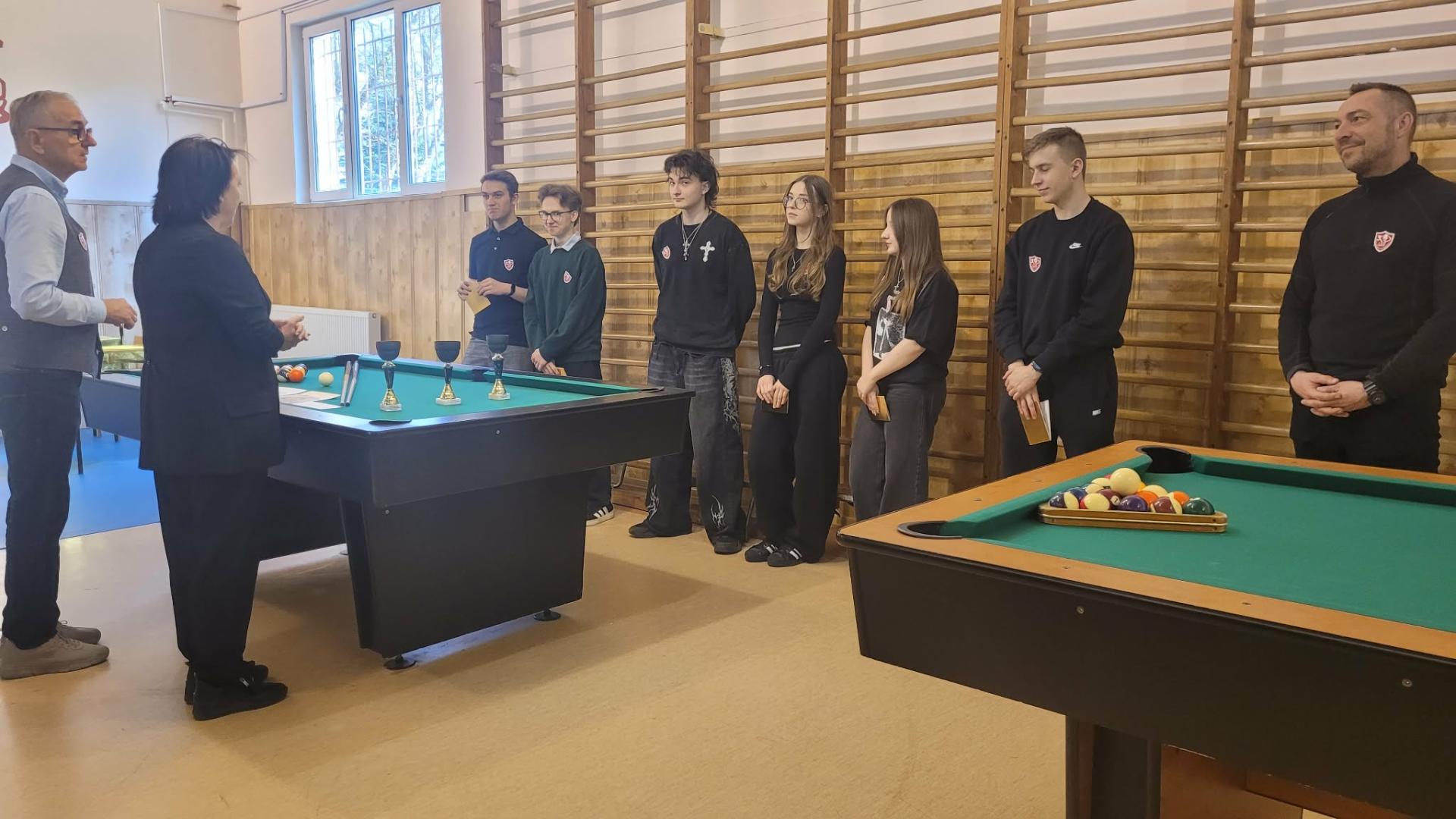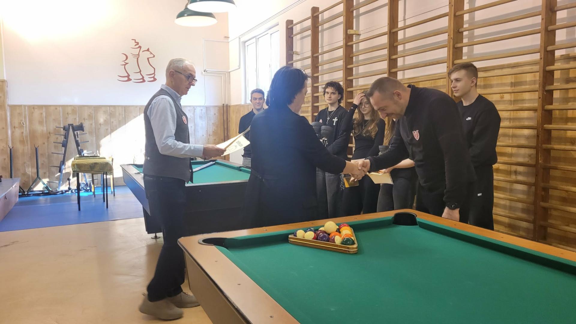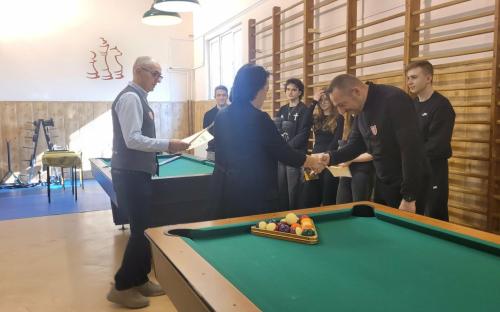 W sobotę 21.03.2026r. w sali bilardowej I LO rozegraliśmy zawody w „8 bil”. Rywalizacja była bardzo wyrównana, a walkę o I miejsce stoczyli Grzegorz i Kacper Kita, tata i syn. Pierwszy raz Kacprowi udało się pokonać tatę i to właśnie on odebrał puchar z rąk Prezes Stowarzyszenia „Żeromszczacy” Zofii Pietraszek. III miejsce ex aequo zajęli Mirosław Świat i Kamila Jasińska, która wygrała w klasyfikacji kobiet. Najlepsi bilardziści otrzymali pamiątkowe puchary, dyplomy i karty podarunkowe. Organizatorami zawodów byli Stowarzyszenie Absolwentów „Żeromszczacy” i nauczyciele wychowania fizycznego w I LO. Wielkie podziękowania składamy Markowi Kołodziejczykowi współorganizatorowi i głównemu sędziemu.